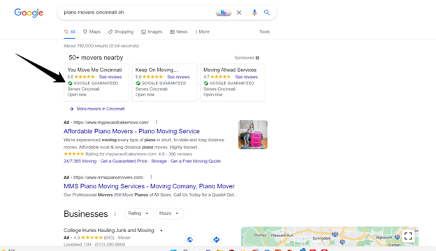 They are at the very top of the page, even above the Google Ads! And they all are backed by the Google Guarantee. Local Service Ads are Google’s version of Angi’s List.